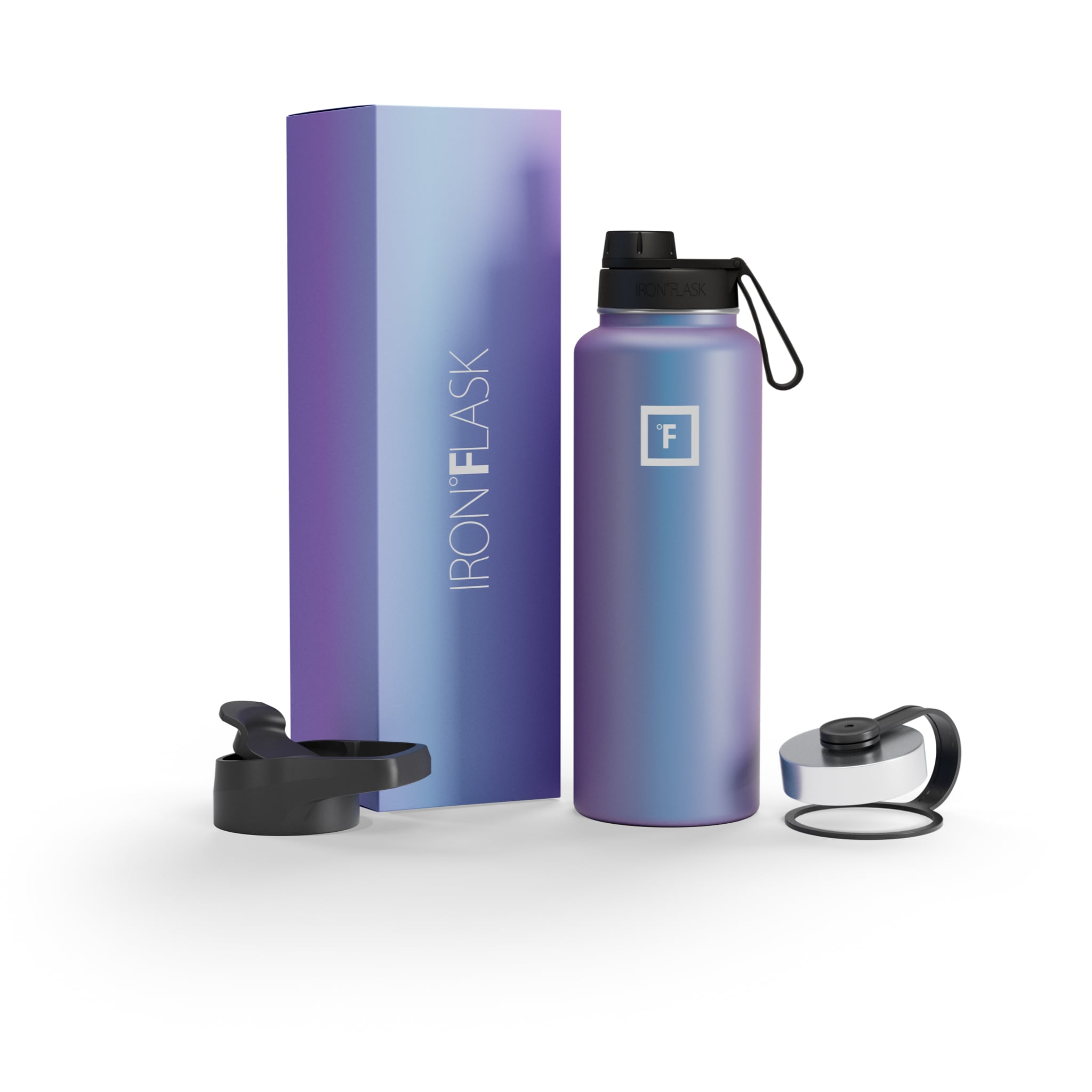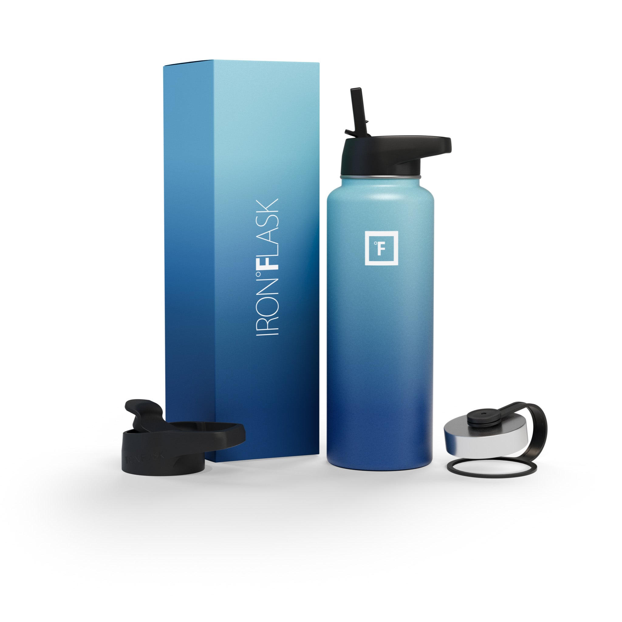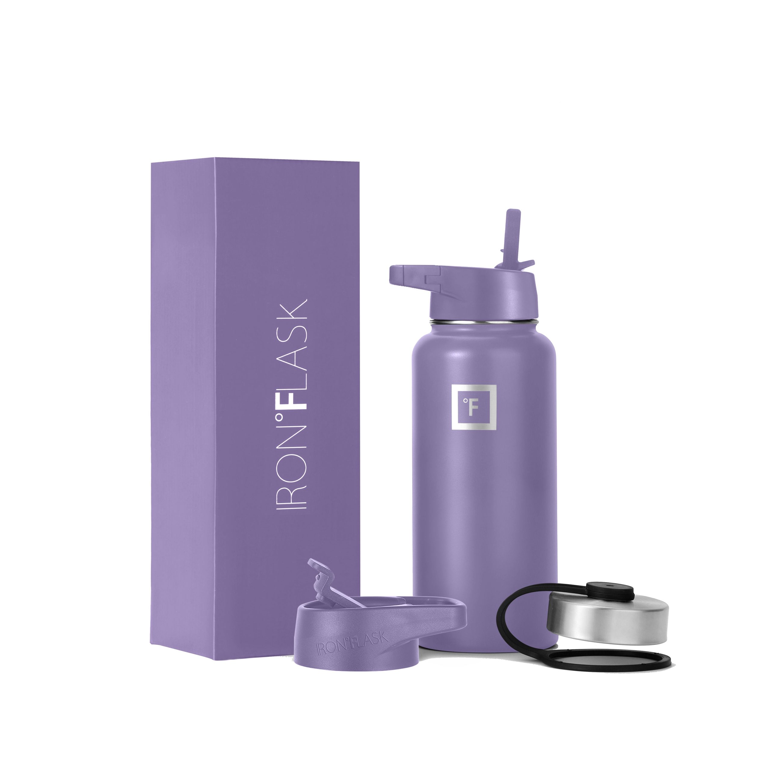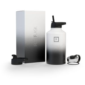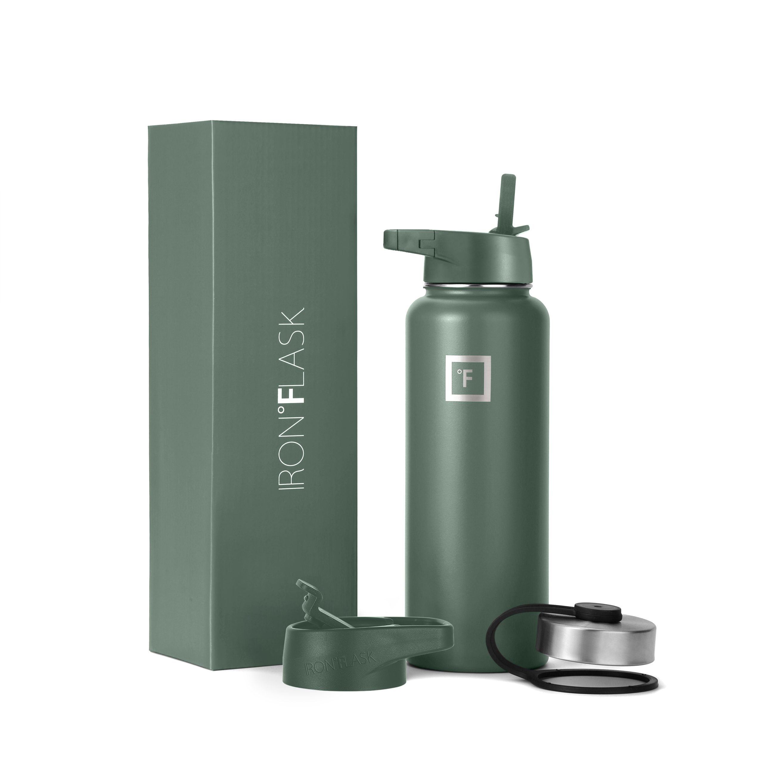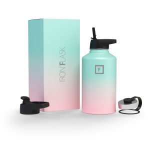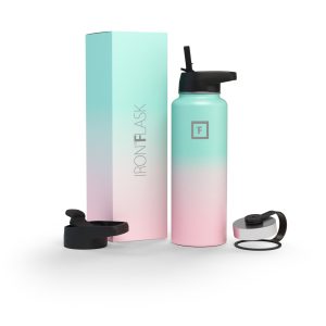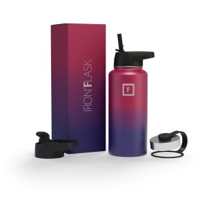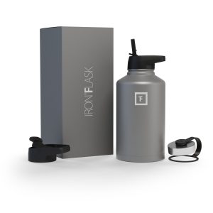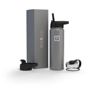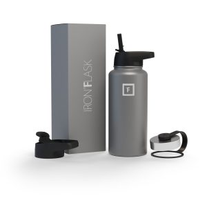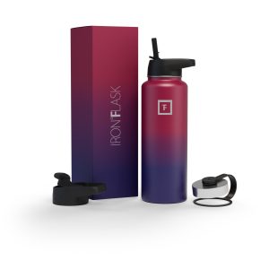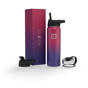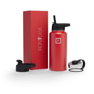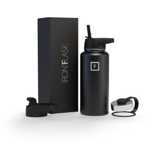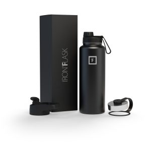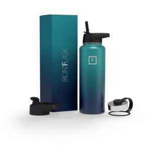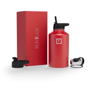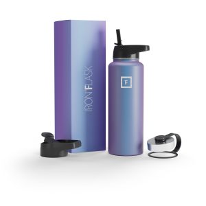 Sip your favorite beverage at the temperature the drink gods intended thanks to the double-wall vacuum insulation of the Iron Flask 40 oz Water Bottle With Straw Lid— 24 hours of icy coldness and 12 hours of piping hotness while staying sweat-proof. This bottle can stand up to roughhousing. but it’s not just another big. dumb water bottle. It features a wide mouth and a carabiner straw lid for quick filling and spill-proof sipping on the go. plus a flip lid and a stainless steel screw-on lid for more options.