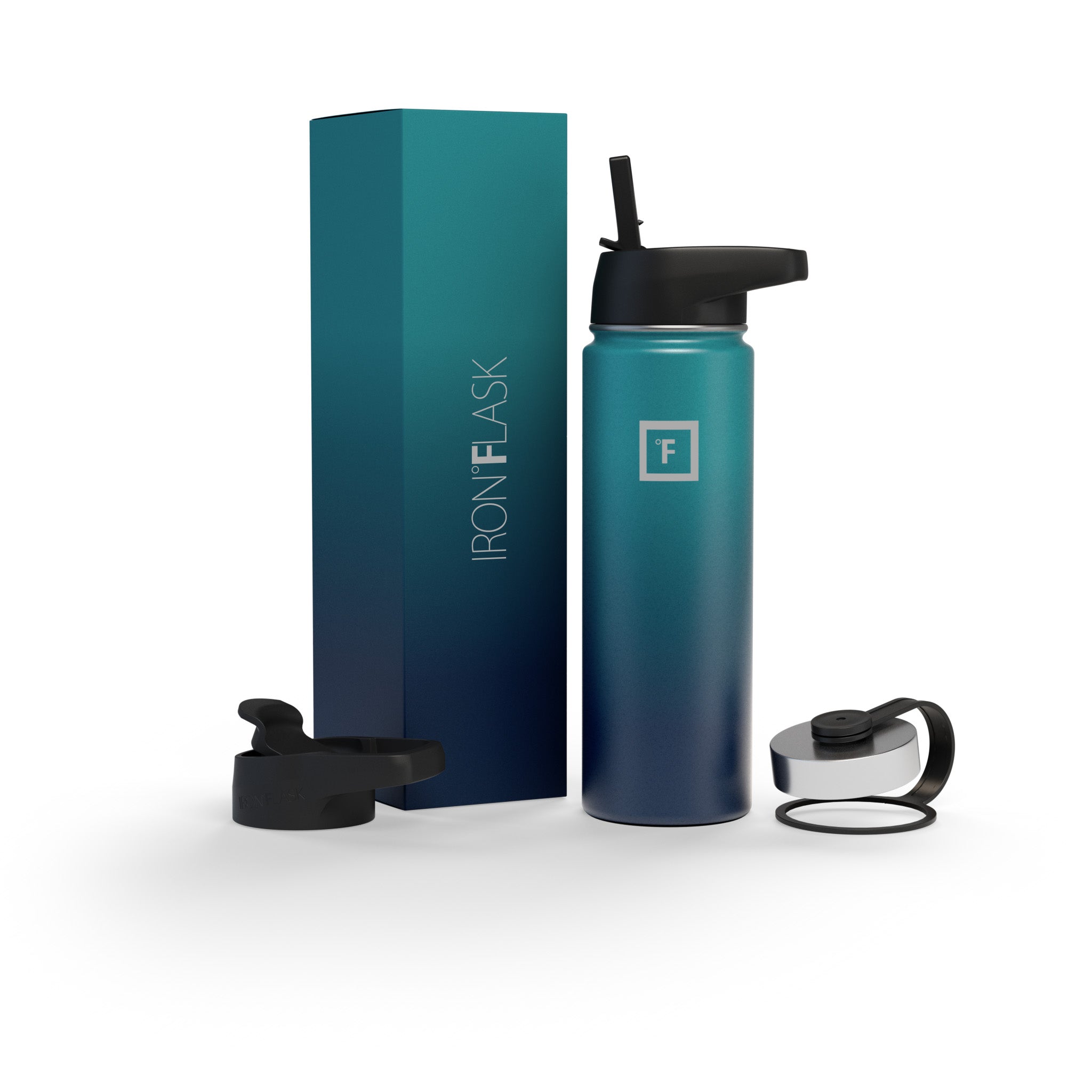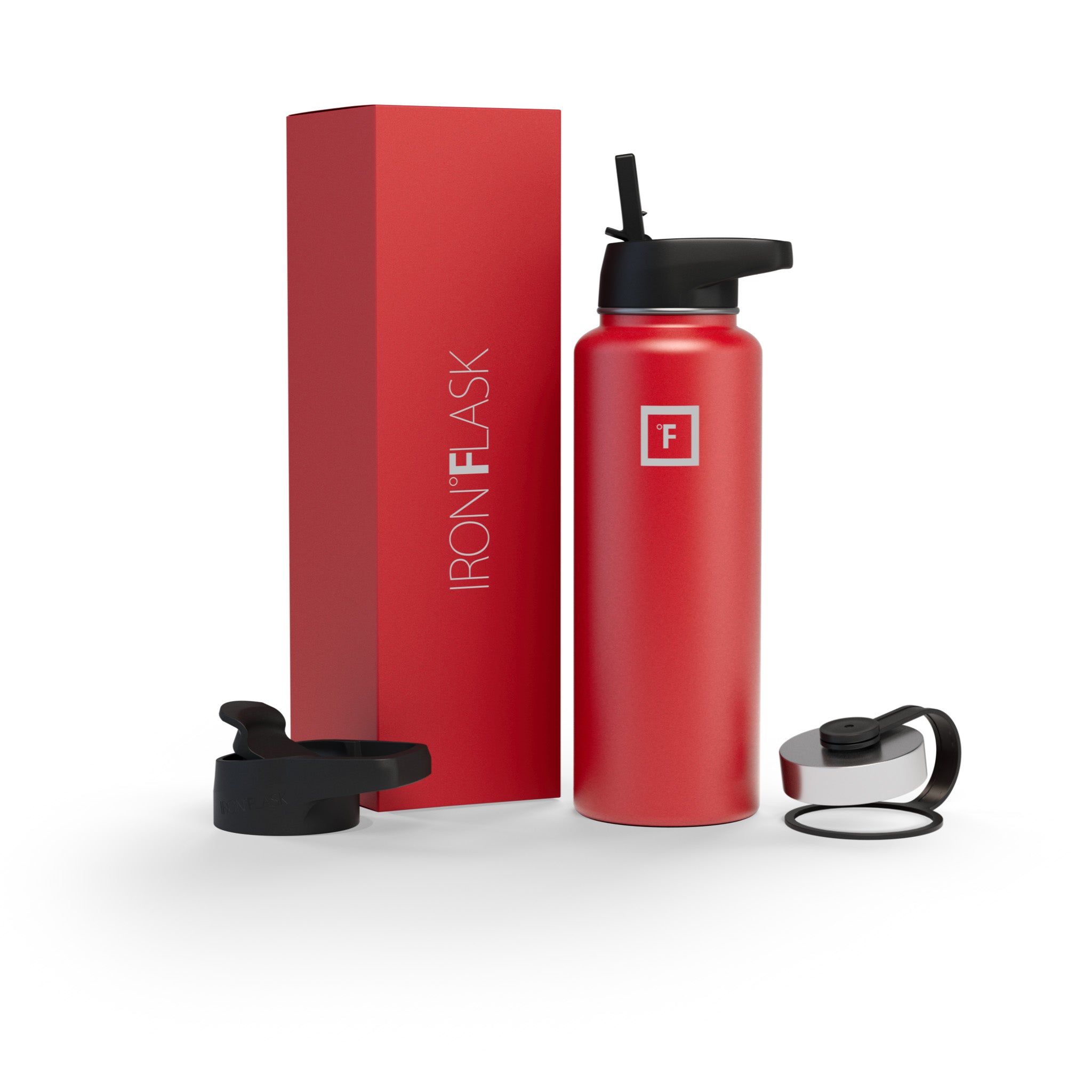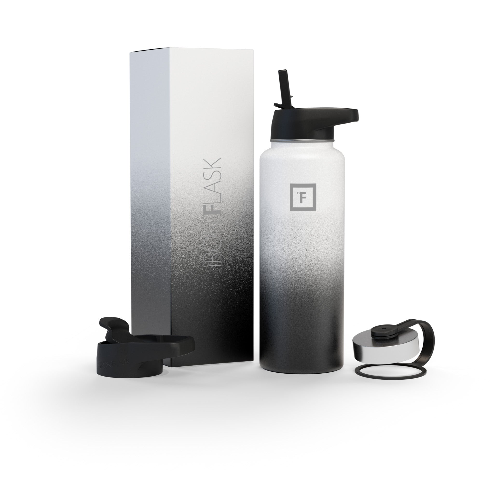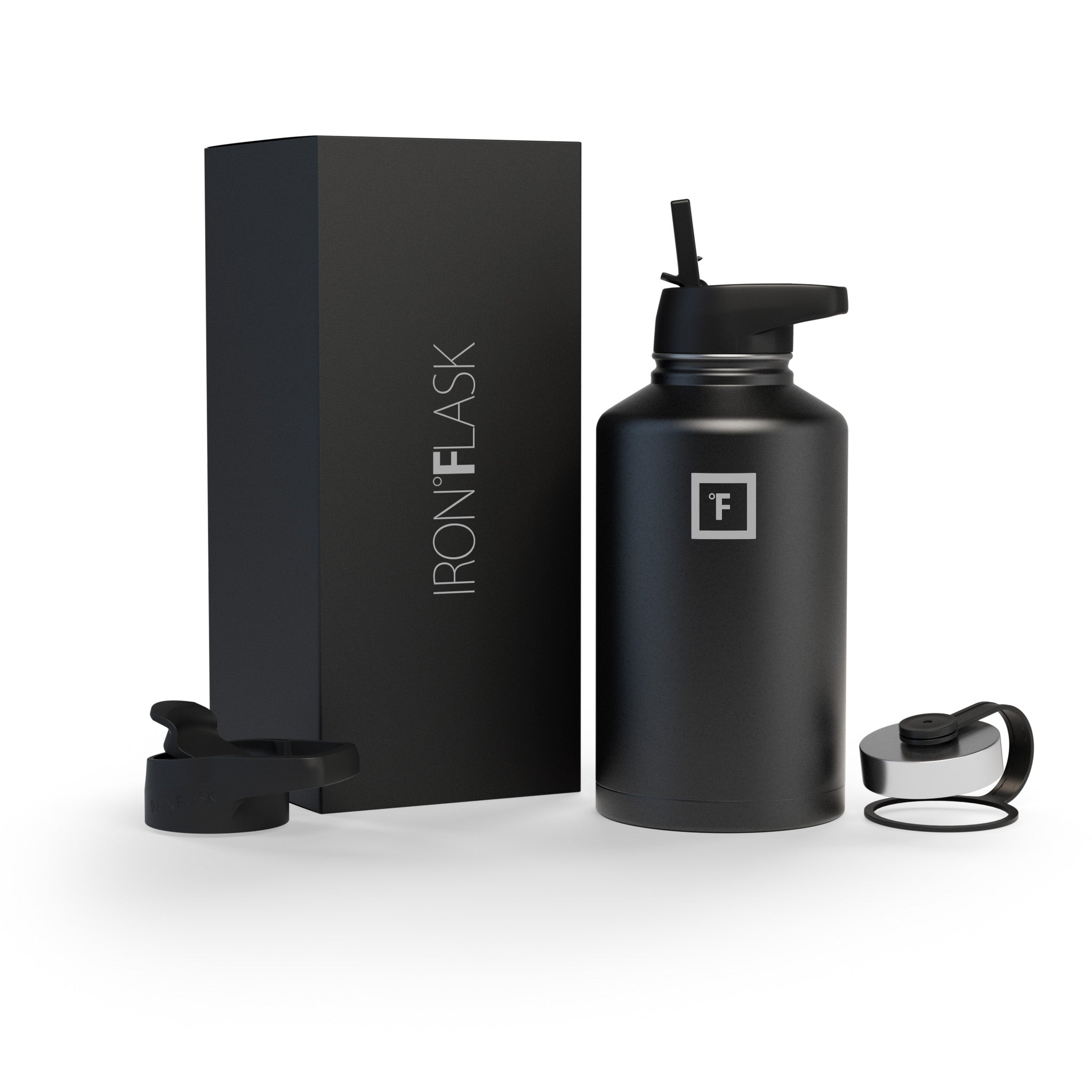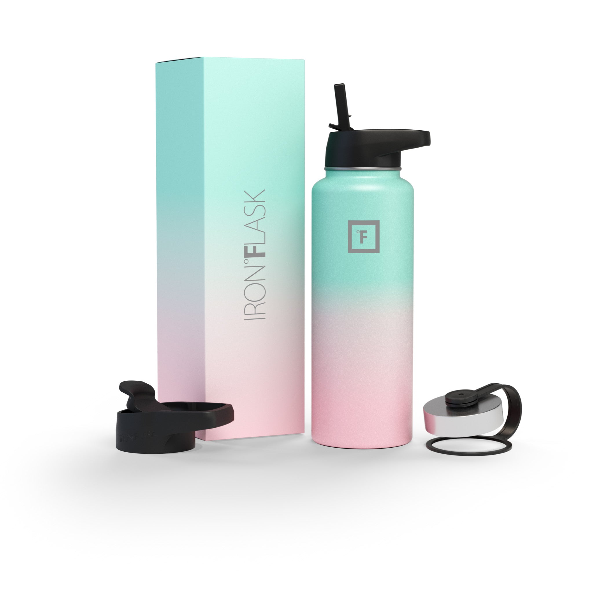 Sip your favorite beverage at the temperature the drink gods intended thanks to the double-wall vacuum insulation of the Iron Flask 40 oz Water Bottle With Straw Lid— 24 hours of icy coldness and 12 hours of piping hotness while staying sweat-proof. This bottle can stand up to roughhousing. but it’s not just another big. dumb water bottle. It features a wide mouth and a carabiner straw lid for quick filling and spill-proof sipping on the go. plus a flip lid and a stainless steel screw-on lid for more options.